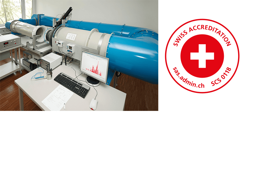 PMS operates a SCS accredited wind tunnel in Wattwil, Switzerland with an air velocity range of 0 to 40 m/s. The calibration laboratory SCS 0118 is monitored by the Swiss Accreditation Service SAS according to ISO 17025.