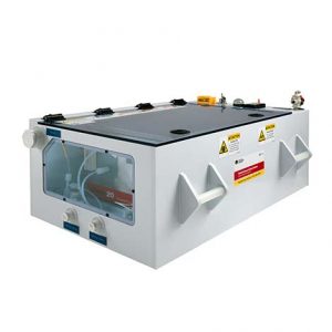The Particle Safety Cabinet houses the chemical particle sensor, detects chemical leaks with an external alarm, and provides secondary containment when a leak occurs. In the event of a chemical leak within the chemical particle counter or sample connections, the system will automatically detect the leak, shut off inlet and outlet sample valves, turn off power to the particle sensor, and provide an external alarm contact.
